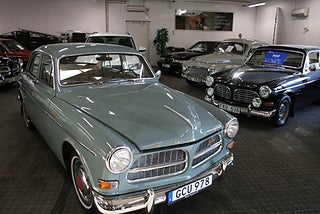 Volvo Amazon 1962 årsmodell ( registrerad som 61 ) första modellen med B18 motorn, omlackerad 2017 i originalets Dimgröna kulör med den Nougatbruna inredningen, en otroligt läcker och lite ovanlig kombination, Liljas Bil sålde och levererade den till Herr K.G Andersson i Bergkvara 24/2 1962 där den rullade lokalt ända tills vi köpte den, bilen har gått ca 9500 mil och är i ett fantastiskt original skick, redo för sommarens träffar, det finns även en Amazon 1959 samt en Volvo PV 1960 till försäljning, Vi har fler USA-bilar och klassiker i hallen, finans och ev transport och export kan ordnas, förmånlig entusiastförsäkring, ring oss gärna innan visning för bästa service samt säkerställa att bilen är kvar och vi är på plats, Bohls Bilar AB Säljer Byter Köper och Förmedlar ditt Classic fordon i Nybro sedan 2004, följ oss gärna på FB för senaste nytt samt fler bilder och videos på våra salubilar, Välkomna önskar Joakim med personal!