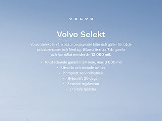 Alla Volvo Selektbilar är utvalda och certifierade av oss. De har genomgått utförliga kontroller och ger dig säkerhet, komfort och kvalitet.