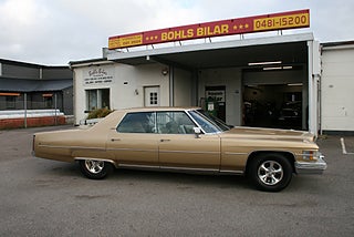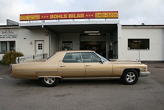 Cadillac Sedan De Ville 1974 årsmodell, en stor och pampig kärra från mitten utav 70-talet med all sedvanlig lyx, under huven sitter den stora 500`cui motorn med automat, och till skillnad från Eldorado och Fleetwood modellen är denna bakhjulsdriven, kom till Sverige 1986 och har en äldre omlackering och inredning i originalskick, Barzetta chrome fälgar med nya däck, besiktigad och körklar men finns lite vinterpyssel om man så vill, vi ordnar finans och ev transport/export, ev byte annan USA-bil/jänkare även dyrare, Kontakta oss alltid för att boka en tid för visning, dels för att försäkra dig om att bilen inte är såld men även för att säkerställa att vi är på plats. Vi försöker alltid lösa visning och leverans när det passar dig även om du inte har möjlighet att komma till oss under ordinarie kontorstider, se fler bilder och videos på våran FB-sida, Bohls Bilar AB Säljer Byter Köper och Förmedlar din USA-bil samt classic fordon i Nybro sedan 2004, Välkomna önskar Joakim med personal!