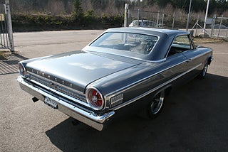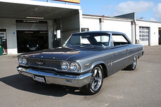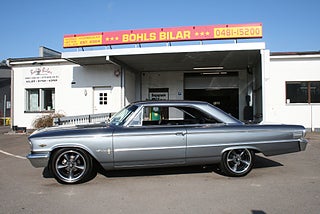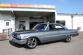 Ford Galaxie 500 Fastback Coupe 1963/5 årsmodell, en mycket välbyggd kärra som är helrenoverad och ramlyft, drivlinan består utav en något vässad 390`Cui V8 med vassare kam, headers och dubbla fyrportare med Shelby luftrenare och ventilkåpor, T10 manuell 4-växlad låda med Hurst-Shifter, "4 On The Floor" Ford 9" tum diffad axel med ställbara Coilovers, skivbromsar fram med Volvo bromsservo, ramen är blästrad och målad, karossen slipad plåtren förutom huv, baklucka och innerskärmar som är i plast och lackerad i Volvos V90 kulör, svart inredning med XL Bucket seats, renoverade instrument, Barzetta fälgar, underbar sång från 390:n ur de dubbla piporna, en hel del dokumentation samt kvitton samt lite delar medföljer, detta är ingen bil för "original nissarna" eller ni som vill åka cruising, denna muskelbil kör man! ett gott alternativ till Mustang Fastback eller Mopar muskler såsom Charger/Challenger/Cuda, se fler bilder samt video på vår FB-sida, finans och ev transport och export kan ordnas, förmånlig entusiastförsäkring, ring oss gärna innan visning för bästa service samt säkerställa att bilen är kvar och vi är på plats, Bohls Bilar AB Säljer Byter Köper och Förmedlar ditt Classic fordon i Nybro sedan 2004, följ oss gärna på FB för senaste nytt samt fler bilder och videos på våra salubilar, Välkomna önskar Joakim med personal!
