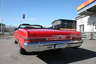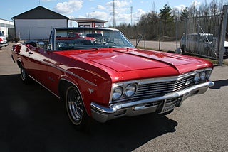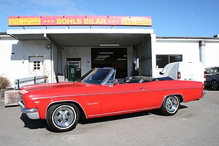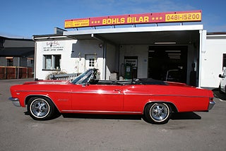 Vi har precis fått in en klassiskt röd Impala cab till försäljning, 1966 årsmodell med en något nyare 350`Cui V8 och Powerglide automat som går fint, både styr och bromsservo, elhissar samt elcab, svart inredning med helsoffa i fint skick och vit cabbe, "dekaltrimmad" med SS-emblem, Cragar SS fälgar med smal vitsida, fler klassiker och USA-bilar i hallen, finans och ev transport samt export kan ordnas, förmånlig entusiastförsäkring, ring oss gärna innan visning för bästa service samt säkerställa att bilen är kvar och vi är på plats, Bohls Bilar AB Säljer Byter Köper och Förmedlar ditt classic fordon i Nybro sedan 2004, följ oss gärna på FB för senaste nytt samt fler bilder och videos på våra salubilar, Välkomna önskar Joakim med personal!