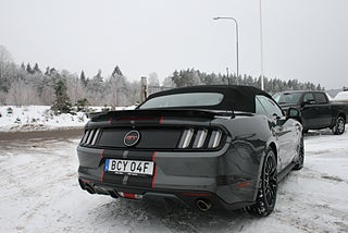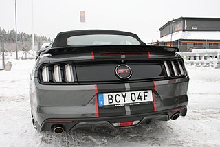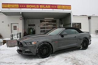 Ford Mustang GT 5.0 421 HK Cabriolet, EU specifikationer och Clean Carfax med full service historik, levereras nybesiktigad (när vädret tillåter), läcker stålgråmetallic kulör med dekaler/stripes som går lätt att plocka bort om man vill, 19" svarta Mustang fälgar, svart skinninredning och cabbe i fint skick, elektriska "Cut-Outs" monterat, Brembo bromsar, denna vildhäst är redo att sträcka ut benen på de svenska sommarvägarna med alla 421 pållarna under huven! ett bra alternativ till liknande modeller såsom Corvette/Challenger/Charger, vi ordnar finans och ev inbyte samt transport/export om så önskas, fler USA-bilar och klassiker i hallen, följ oss på FB för senaste nytt samt mer bilder och videos på våra objekt, ring oss för visning utav detta objekt, Bohls Bilar AB Säljer Byter Köper och Förmedlar din bil i Nybro sedan 2004, Välkomna önskar Joakim med personal!
