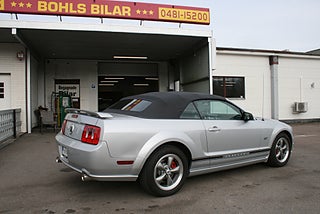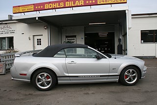 Ford Mustang GT Convertible 4.6 liters V8 i en läcker färgkombination, OBS detta objekt står ej i hallen ring oss för bokad visning! silvermetallic med svart inredning och cab som är bytt, svarta "Rocker panel stripes" och rödlackerade bromsok, ett mycket fint skick och Clean Carfax, mycket dokumentation, fler klassiker och USA-bilar i hallen, finans och ev transport samt export kan ordnas, förmånlig entusiastförsäkring, ring oss gärna innan visning för bästa service samt säkerställa att bilen är kvar och vi är på plats, Bohls Bilar AB Säljer Byter Köper och Förmedlar ditt classic fordon i Nybro sedan 2004, följ oss gärna på FB för senaste nytt samt fler bilder och videos på våra salubilar, Välkomna önskar Joakim med personal!