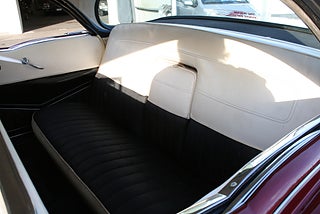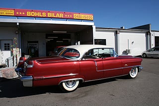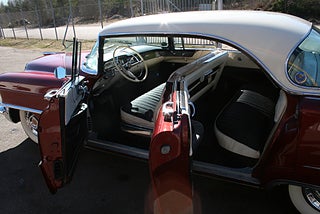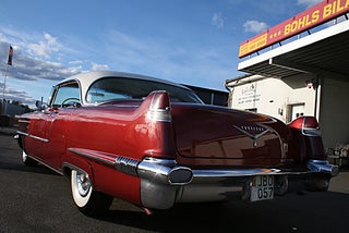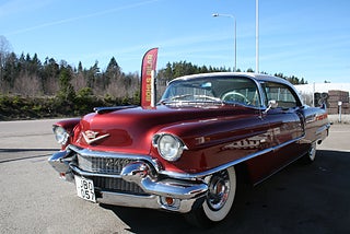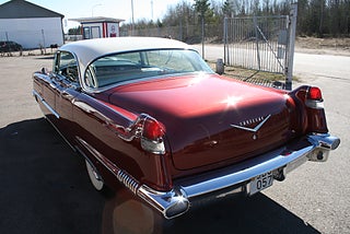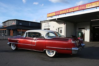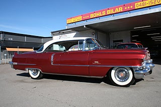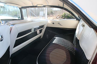 Cadillac Sedan De Ville en riktig tungviktare från 1956 i en läcker färgkombination, 365 Cui med Hydramatic som går fint, power steering, power brakes, elhissar, soft-close baklucka, kom till Sverige redan 1982 och fått en omlackering i vinrödmetallic med gräddvitt tak, inredning är förmodligen original och i gott skick, även skuff inredning är det ursprungliga från när bilen lämnade fabriken 1956, denna modell var en milstolpe för Cadillac som för första gången tillverkade en serie 62 4 dörrars hardtop detta modellår, den såldes i över 41 000 exemplar och blev mer populär Coupe De Ville modellen, fler klassiker och USA-bilar i hallen, finans och ev transport samt export kan ordnas, förmånlig entusiastförsäkring, ring oss gärna innan visning för bästa service samt säkerställa att bilen är kvar och vi är på plats, Bohls Bilar AB Säljer Byter Köper och Förmedlar ditt classic fordon i Nybro sedan 2004, följ oss gärna på FB för senaste nytt samt fler bilder och videos på våra salubilar, Välkomna önskar Joakim med personal!