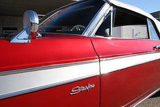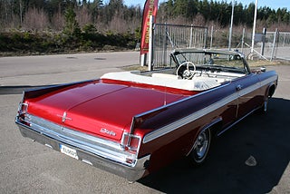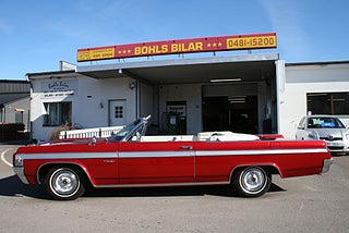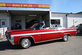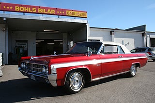 Oldsmobile Starfire Convertible 1963 årsmodell, den dyraste Olds modellen detta år och tillverkad i låga 4401 st exemplar, 394` Cui Rocket V8 "Ultra High Compression" tillsammans med en nyrenoverad "Slim Jim" automatlåda, omlackerad i Sverige i en läcker vinröd kulör som matchar den gräddvita inredningen och cabben väl, ett snyggt listverk längs sidorna, inredningen är original med Bucket Seats, mittkonsol med floor shifter och varvräknare, både styr och bromsservo, elhissar, cabben är bytt och elstyrd, AC-bil ( ej i funktion ), sminkspegel på solskyddet, original dokumentation samt manualer, betydligt ovanligare modell än syskonen 88/98 och en mycket trevlig kärra redo för sommarens träffar! fler klassiker och USA-bilar i hallen, finans och ev transport samt export kan ordnas, förmånlig entusiastförsäkring, ring oss gärna innan visning för bästa service samt säkerställa att bilen är kvar och vi är på plats, Bohls Bilar AB Säljer Byter Köper och Förmedlar ditt classic fordon i Nybro sedan 2004, följ oss gärna på FB för senaste nytt samt fler bilder och videos på våra salubilar, Välkomna önskar Joakim med personal!
