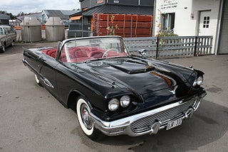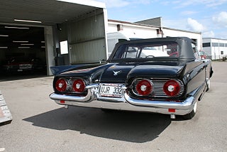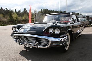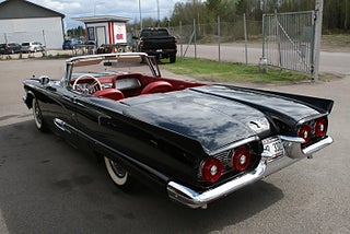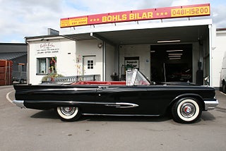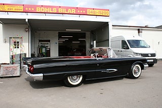 Denna bil står ej i hallen ring innan visning! Ford Thunderbird Convertible 1959 årsmodell i ett fantastiskt skick med en läcker färgsättning, J-Code 430`Cui motorn på hela 7.0 liter som var options motorn detta år för Squarebirden, Ford-O-Matic 3-stegad låda, power steering, power brakes, elektrisk cabriolet, elstol förare, bilen är helrenoverad med en blank och fyllig svart solid lack på en rostfri kaross som matchar den röda inredningen perfekt, en "Dunderpippi" för dig som söker det lilla extra! Vi ordnar finansiering samt ev transport/export om så önskas, fler USA-bilar och klassiker i hallen, ring oss innan visning, Bohls Bilar AB Säljer Byter Köper och Förmedlar i Nybro sedan 2004, Välkomna önskar Joakim och Marcus!