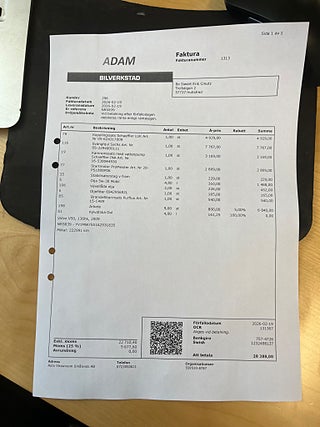 2026-02-16 Bytt Kamremsats, Kopplingssats inkl Svänghjul, Olja oljefilter, Växellåda olja , Bränslefilter, Startmotor ( Kvitto på 26 660 kr finns ). Besiktad