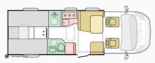 Karossen är av typen Husbil Halvintegrerad med takbädd och 749 cm lång