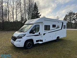 Airbag förare & passagerare, Maxxfan takfläkt i sovdel, Nya M+S däck. Mycket fin Pilote P 746 GJ, Garantiförsäkring som gäller i minst 12 mån med 625 kr i självrisk ingår.