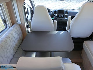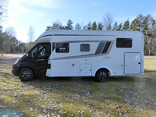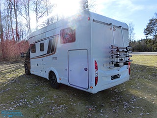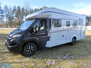 Hjuldrift: Framhjulsdrift, Airbag förare & passagerare, Bordsstativ - höj och sänkbart, Motortyp: 140CV-HDV-35-4035 EURO 6, lackerade stötfångare i bilens färg, Läderklädd multifunktionsratt, Elektrisk nedfällbar taksäng, Svart boxmarkis med LED belysning, Takluckor med myggnät och mörkläggningsgardin, Cykelställ för 4 st cyklar, Garantiförsäkring som gäller i minst 12 mån med 625 kr i självrisk ingår