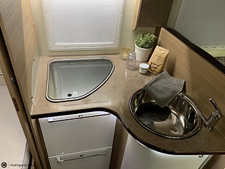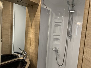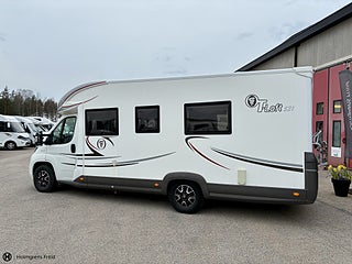 Karossen är av typen Husbil Halvintegrerad med takbädd och 738 cm lång