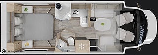 Karossen är av typen Husbil Halvintegrerad med takbädd och 806 cm lång