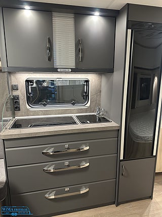 Bordsstativ - höj och sänkbart, 3-ledat TV-fäste inkl. kabeldragning, Köksfläkt Dometic med hastighetsreglering. OBS! Modellberoende se datablad