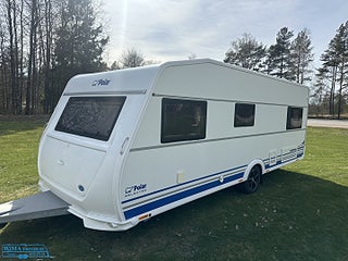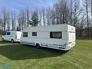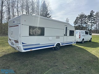 Bordsstativ - höj och sänkbart, Fast markis tak. Fabriksnytt förtält från svenska tält, Kompressor kylskåp. Garantiförsäkring som gäller i minst 12 mån med 625 kr i självrisk ingår. En mycket fin vagn med bara en ägare.