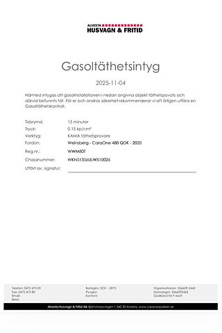 Fukt- och gasoltestad utan anmärkning.Mycket lite använd — fräsch invändigt.Lättdragen och smidig vagn. Perfekt för både camping och semesterresor
