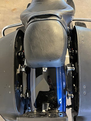 En riktigt blickfångare som passar för både statskörning och långa turer. Utrustad med avtagbar kåpa, Sissybar, pakethållare, allt är monterat med snabbfäste. Säljes nybesiktigad och nyservad.