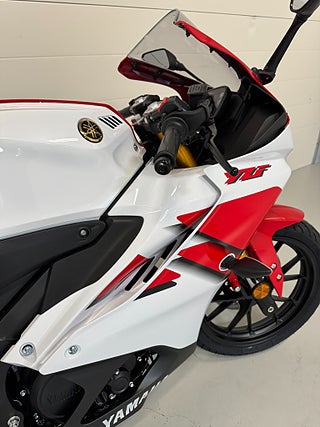 Yamahas ultimata lättvikts-Supersport, är tillverkad med klassens bästa specifikationer och har en renodlad racingutvecklad motor- och ramteknik. Med ny grafik och nästa generations Icon Blue-, Tech Black- och 70th Anniversary-färgscheman som förstärker dess familje-DNA från R-serien har denna lätta Supersport på 125 kubik en seriös storcykelattityd.