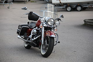 Här är ett fint ex i Roadking Classic-utförande med insprutad Twin cam 88 där vindruta sidoväskor motorbåge och dubbellyse sitter på som standard men som dessutom utrustats med beachbar-styre sissybar highway pegs och öppnare ljuddämpare. Originaldelar ljuddämpare medföljer denna svensksåld pärla som är körklar och besiktigad till 2026-06-30. Kundförsäljning.