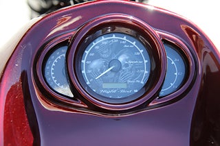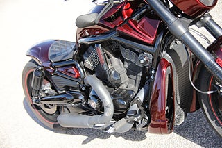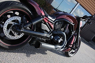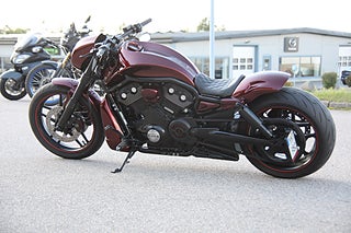 Här är en specialbyggd version av Night Rod SP med en mycket smakfull utformning och en fantastisk lack som utrustats med kompressor samt luftassisterade och justerbara stötdämpare bak Vance & Hines luft o buller och det fetaste bakhjulet som går att använda samt en mängd fina detaljer och detaljarbeten som är alldeles för många för att nämna här. En hoj som bara måste ses men se upp! Risken är stor att du får en alldeles unik Night Rod SP med dig hem.