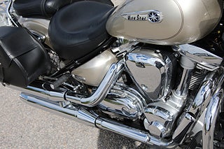 Yamahas XV 1600 WildStar är inte blygsam någonstans. Denna sköna glidare syns, hörs och upplevs stort oavsett om du sitter bakom styret eller står jämte. För den är stor, både vad gäller motor och chassi. Smeknamnet ”vildstare” är dock inte helt utan sanning. för på något sätt lyfter den ändå när man fått upp lite fart och ”flyger” riktigt elegant och kontrollerat genom kurvkombinationerna.