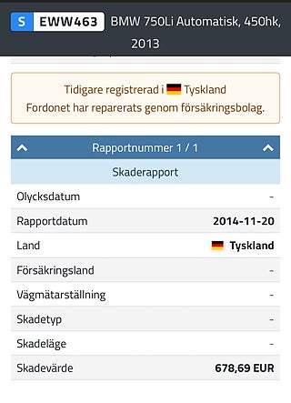Inrapporterad skada från Tyskland för 678euro 2014-11-20
