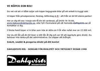 **Vi tar gärna din gamla bil i inbyte, ev. inbyte räknas som kontantinsats.**