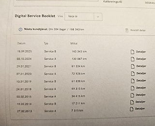 Fordonets historik - 26 händelser finns registrerade