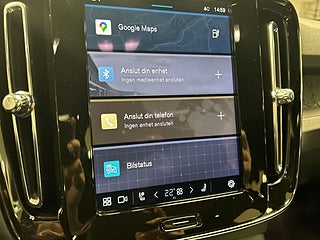 C40 har en uppkopplad och användarvänlig infotainment-plattform, ofta med stora skärmar, navigation, stöd för Apple CarPlay/Android Auto och inbyggda kartor, vilket gör vardagskörningen smidigare och mer intuitiv.