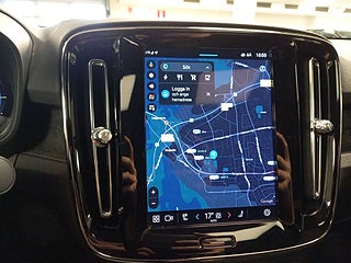 C40 har en uppkopplad och användarvänlig infotainment-plattform, ofta med stora skärmar, navigation, stöd för Apple CarPlay/Android Auto och inbyggda kartor, vilket gör vardagskörningen smidigare och mer intuitiv.