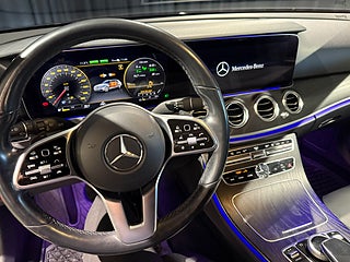 En rikligt utrustad e-klass med skinnklädsel, Burmester, 360-kamera, Adpativ-farthållare, Adapativa helljus, SoftClose i dörrarna! El-justerbar ratt.