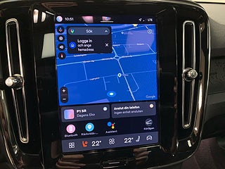 EX40 erbjuder Volvos senaste infotainment-plattform med Google-integration (Maps, Assistant etc.), röststyrning och smarta uppkopplade tjänster, vilket gör navigation och vardagsanvändning enkel och intuitiv.