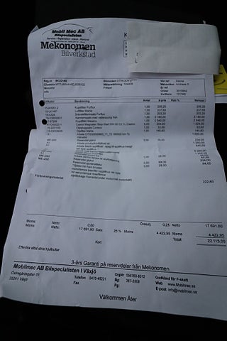 - Komplett ifylld Servicebok