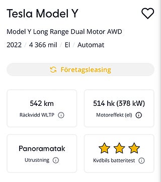Vi säljer en välvårdad Tesla Model Y Long Range AWD i mycket fint skick. Endast 4 300 mil och en enda ägare sedan ny. Bilen är sparsamt körd, alltid skött enligt rekommendationer och har ett batteri i mycket gott