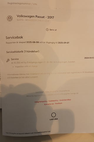 - Komplett ifylld Servicebok