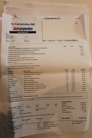 Fullservad , se service protokoll i annonsen.
