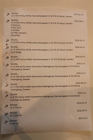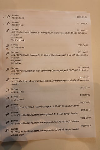 Fordonets historik - 24 händelser finns registrerade