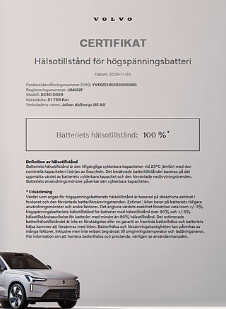 MärkeVOLVOFordonsår2023I trafik2023-11-27MiljöklassELUtsläppsklassELFärgSilver