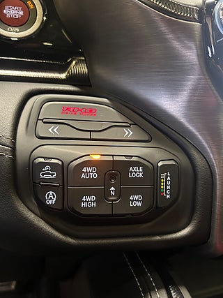 Utrustning: Bed Utility Group (excl bed divider), Off-Road Style Running Boards, Fyrhjulsdrift med Auto 4WD / 4H / 4L, 3.92 i bakaxelutväxling (rear axle ratio), Elektroniskt spärrbar differential (E-locker), Bilstein Black Hawk e²-dämparsystem, Dragkapacitet utökat till 3500 kg, Sportmultifunktionsratt i läder, Uconnect 5 NAV med 14.5” display, Trådlös Apple CarPlay/Android Auto, Harman Kardon® Premium Ljud, Dubbel trådlös laddningsplatta för smartphone, Värme och ventilation i stolar fram & bak, 2-zons Automatisk klimatanläggning, 8-stegad automatisk växellåda, Surround View 360 graders kamerasystem, Keyless System med Fjärrstart, mm.