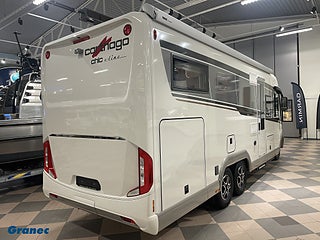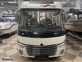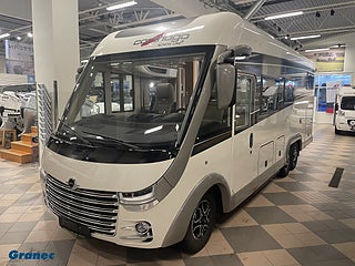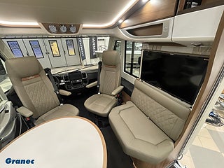 Hjuldrift: Framhjulsdrift, Motortyp: Fiat (heavy duty) Euro 6 E, Superpaket: Klimatautomatik förarhytt·Farthållare·Laddningsbooster·Förarhyttens stolar ställbara i höjd och lutning (fram/bak)·Finish instrumentbräda och ventilationsgaller i krom·Manuella stödben·Busspegel m instegsbelysning förarhytt·XL-entrédörr "Safetyluxe" m dubbellås·Centrallås förarhytt och entredörr last- och skotergarageluckor·Garageinredning med nålfiltmatta/lastnät/lastsäkringssystem·SOG-toalettventilation·Alde värmeväxlare·Truma DuoControl CS·Designbarskåp·Carthago set med tre fartygsinstrument·Toalett Thetford 260 med keramisk insats·USB-uttag i överskåp bakre säng·Förberedel, TILLÄGG backkamera med dubbelobjektiv och visir på bakvägg istället för enkelobjektiv, AL-KO HY4 hydrauliska stödben fram och bak, 9G-Tronic automatisk automatväxel, Kök/kaffe-paket: spänningsomvandlare 12 V till 230 V·1 800 watt·nätprioritering ·kaffekapselbryggare för kaffebryggarlift med anslutning inkl. kapselhållare och uppsättning koppar, TV-paket sovrum: Carthago TV-utdragssystem för TV-skåp i sovrum·LED-TV 24"· (M