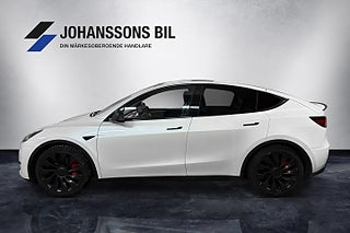 Väldigt fin Tesla Model Y Performance med dubbla uppsättningar sommardäck och vinterdäck på Uberturbine-fälgar. Även med dragkrok!