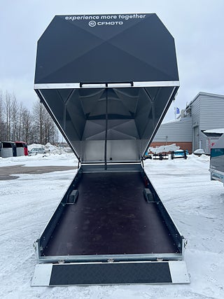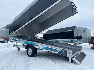 Praktisk släpvagn som tex. rymmer två långa snöskotrar.