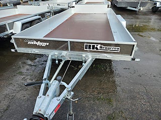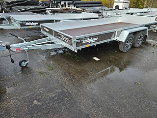 En rejäl boggievagn med lastmått 440x195cm. Totalvikt 2700kg med lastvikt 2130kg. Finns i lager för omgående leverans.