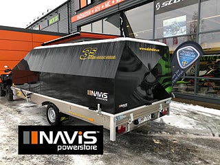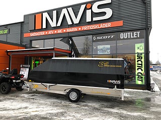 Lastutrymme: 430 x 190 x 18 cm Vädertålig plywood, Skotersläpet som är byggt i aluminium har flakbotten och bakre läm i vattenbeständig plywood för att last och lossning av skoter skall gå smidigt. Baklämmen har även plywoodskiva för smidig lastning.Kraftig svetsad aluminiumkonstruktion. Vi ordnar finansiering vid behov välkommen in för mer info.