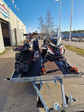 Temared Multitransporter 4018 som rymmer 2st skotrar gott och väl. Lastmått 401x186cm. Totalvikt 1300kg med lastvikt 950kg. Finns i lager för snabb leverans.