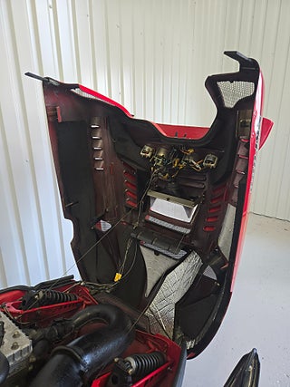 En riktig veteranskoter inne i våran nya butik! En Skidoo Formula Plus från 1992 i mycket bra skick. Polerad huv. Startar och går bra. Sitter 2 avgastempgivare på grenröret som går till mätare.