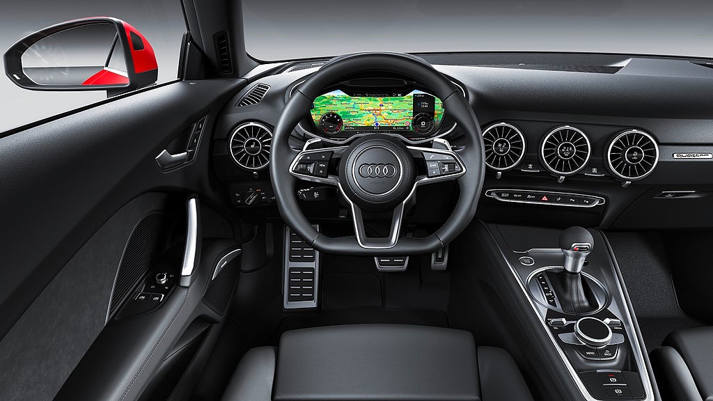 Standardmässigt sitter det 17-tumshjul på bilen men så futtigt kan man ju inte utrusta en TT. Tänker antagligen Audi och erbjuder 18-, 19-, och 20-tummare som tillval. Tre nya kulörer har tillkommit. När det gäller Roadster kan man få tygsuffletten i grått eller svart. Den manövreras elektriskt och fälls upp eller ner på 10 sekunder.
