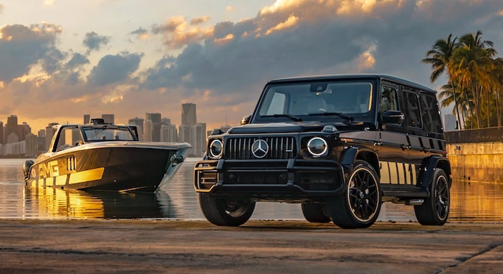 Med en 59-fots Tirranna AMG tillsammans med en Mercedes-AMG G63 Cigarette blir du tuffast och snabbast både till sjöss och på vägen.