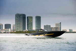 Visst har AMG G63 en kraftfull V8 med dubbelturbo under huven på 585 hk, men jämfört med de sex 4,6-liters Mercury V8:orna som sitter på Cigarette-båten är det ingenting. Varje motor har över 450 hk, vilket innebär att båten har mer än 2700 hästkrafter! Båten toppar 130 km/h.