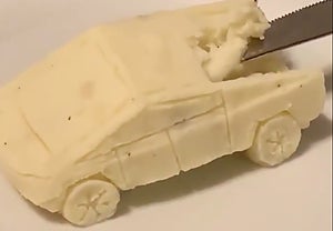 Tesla Cybertruck ska enligt Elon Musk vara världens hårdaste bil och är både skott- och buckelsäker. Men Greg Milanos Cybertruck är betydligt mjukare i konsistensen. Han har skapat en exakt kopia av Tesla nya pickup – gjord i potatismos. Det lilla konstverket har nu blivit en viral succé i hela USA och är omskriven av såväl CNN, USA Today som Fox News.