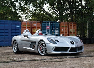 Specialutgåvan av Mercedes-Benz SLR skapades i samarbete med McLaren. Bara 75 exemplar tillverkades av den unika hyperbilen. Bilen saknar både tak och vindruta och ska erbjuda en optimal frihetsupplevelse. Den kompressorladdade AMG-V8:an ger 650 hk och tar bilen upp till 100 km/h på 3,5 sekunder tack vare att 200 kg vikt bantats bort. Bilen kommer dessutom med ett par speciella glasögon för föraren som levererades som standard från fabriken. Men kanske är det den tidigare ägaren som gör detta exemplar riktigt unikt: Mika Häkkinen, F1-mästaren!
